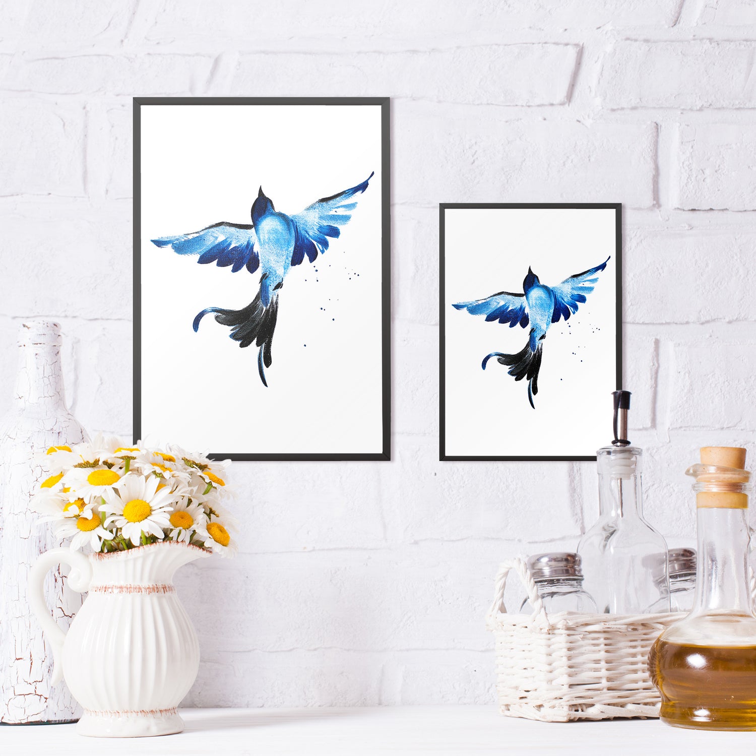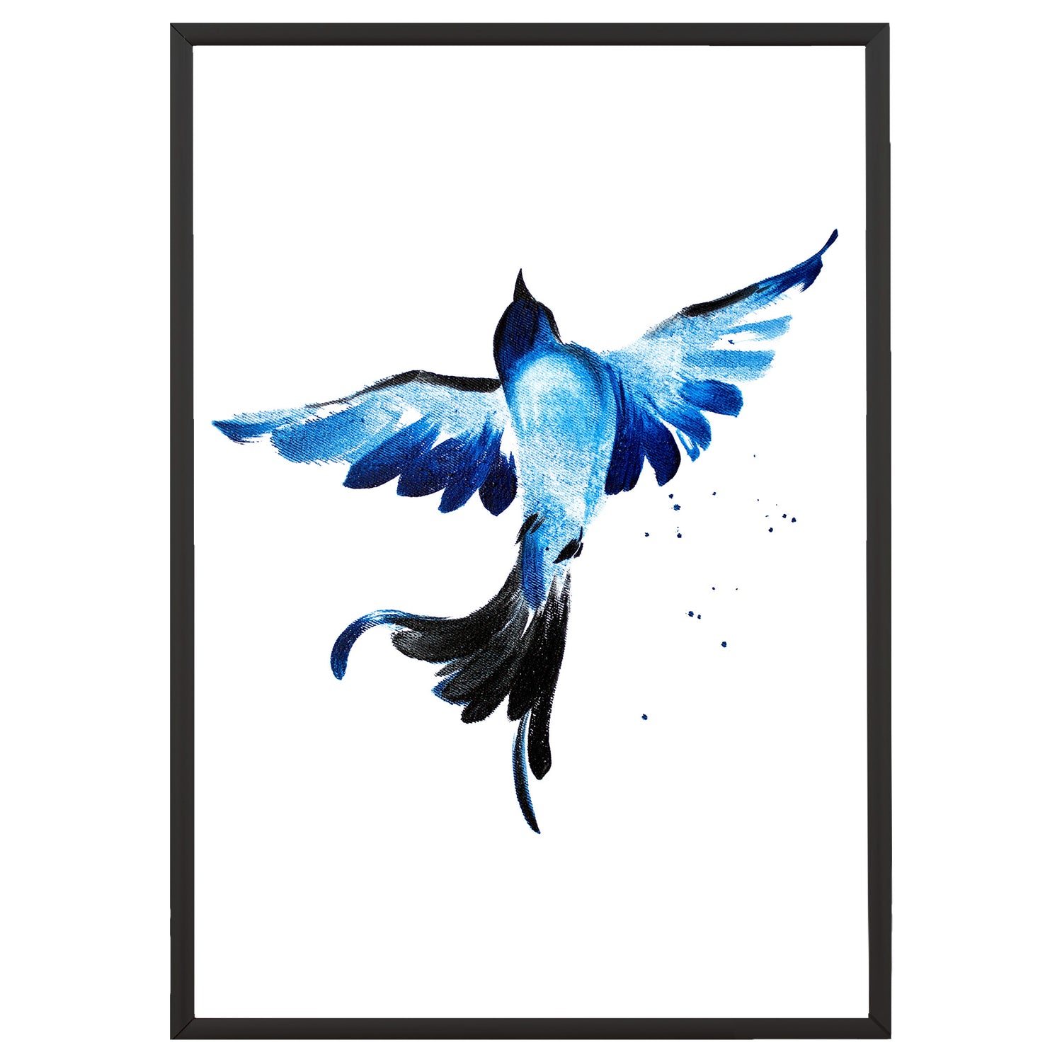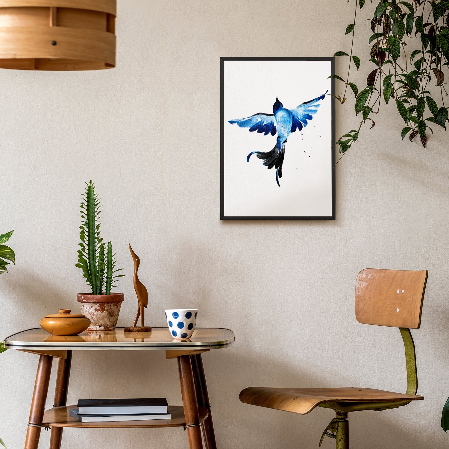 青い鮮やかな飛鳥が描かれた水彩手書き風ポスター。