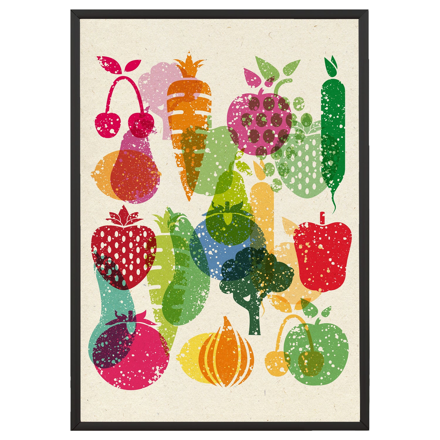 色とりどりのフルーツや野菜がキャンバスいっぱいに広がる柄。