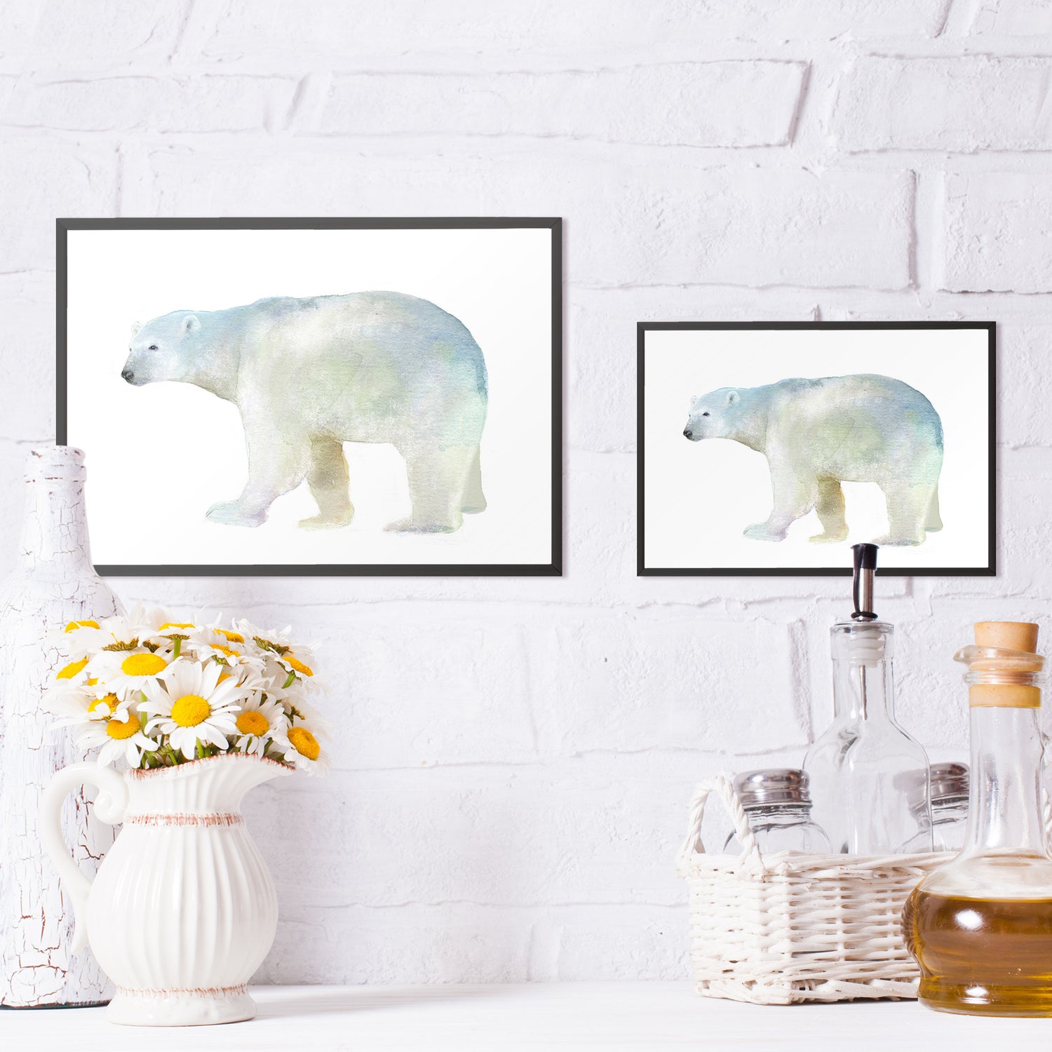 北欧デザイン風の水彩の白熊。
