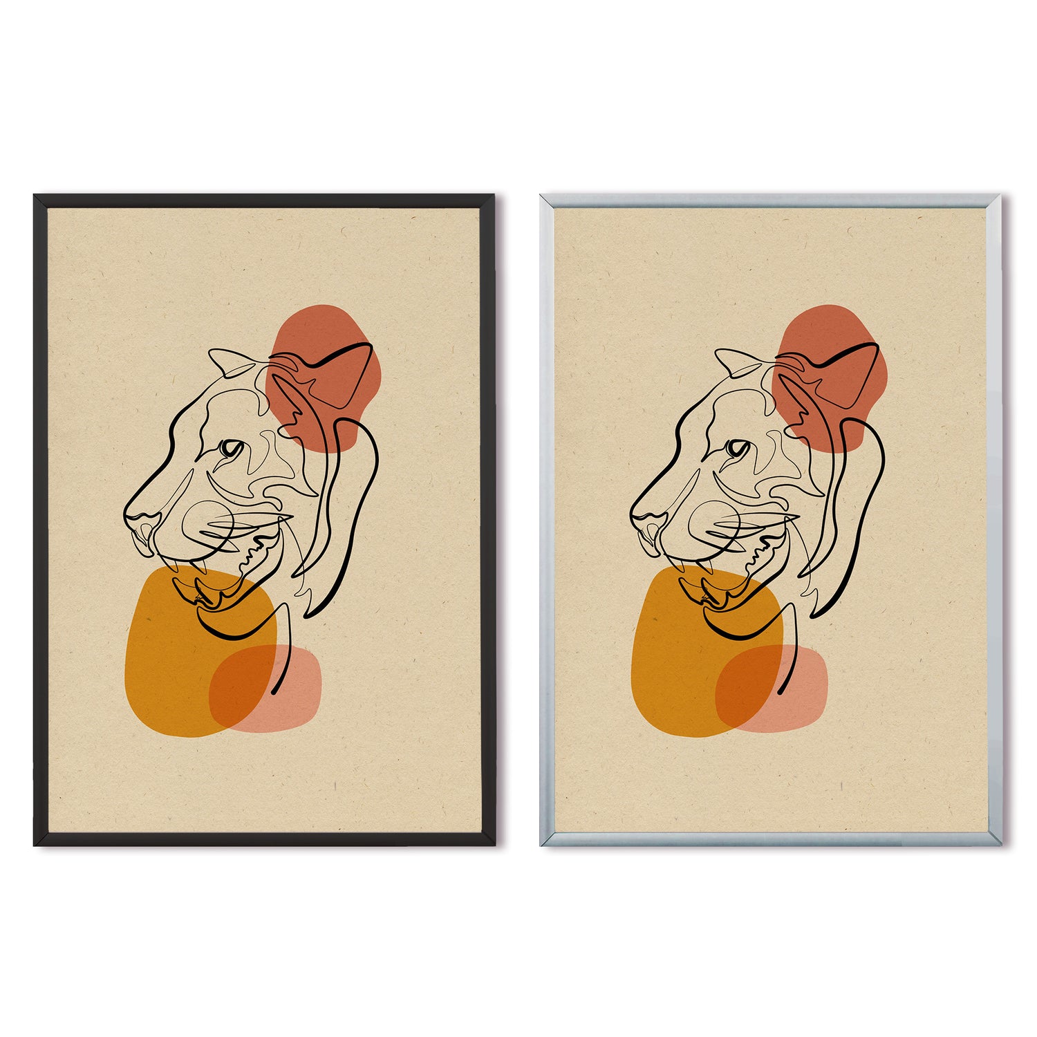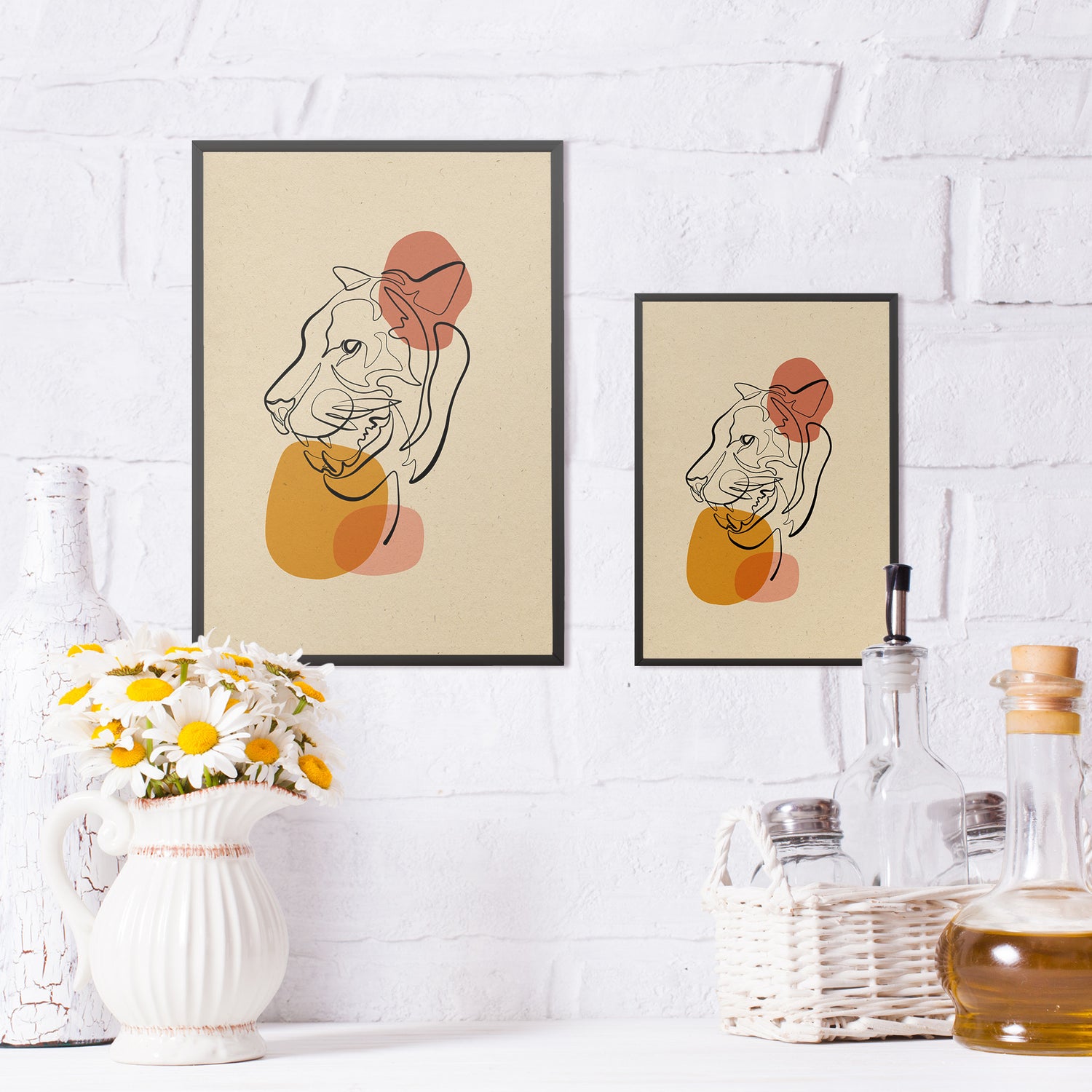 威厳のある虎の横顔を表現したラインアート。シンプルながらも確かな存在感を与えます。