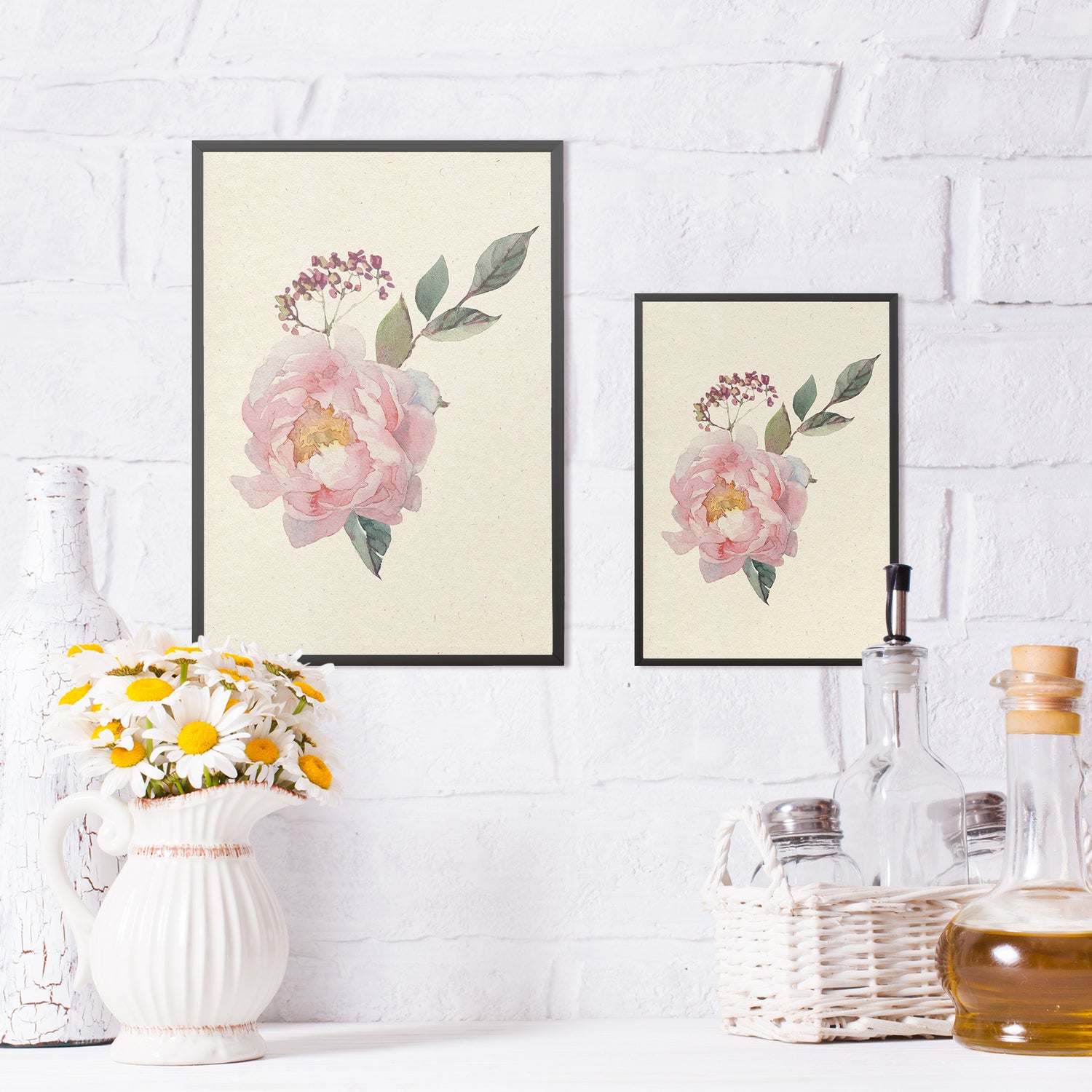 花の水彩アート。まるで和紙のようなバナナペーパーの質感と水彩の淡いニュアンスが魅力のアートです。